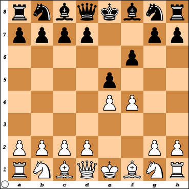 The move White responded with is 3. Nf3, a good developmental move that a Queen's Gambit player might be inclined to play but definitely not the best one (more on that below). The game continued with accurate move play 3 ... Nc6 4. Bc4 and then Black played h6??. White responded with 5. fxe5 (better would have been Nh4 or Nxe5) Nxe5?? loses the game (fxe5 keeps Black in the game with maybe a slight advantage to White). The game finished 6. Nxe5 fxe5 (D) and here White has a forced mate in 5.