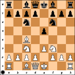 F. Lee - Nimzovich (Ostend 1907): 1. d4 Nf6 2. Nf3 d6 3. Nbd2 Nbd7 4. e4 e5 5. c3 Be7 6. Bc4 0-0 7. 0-0